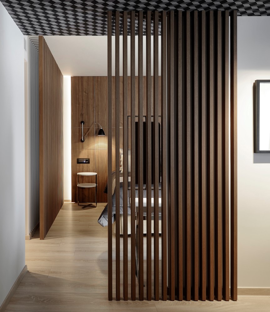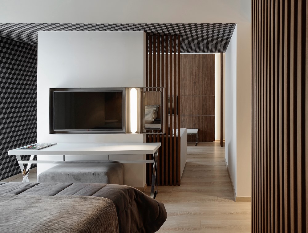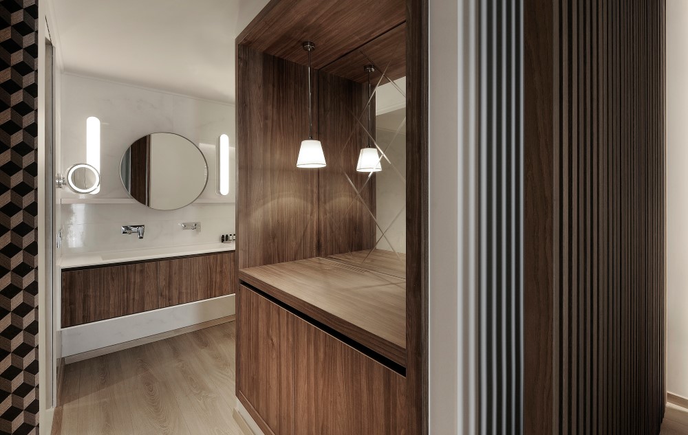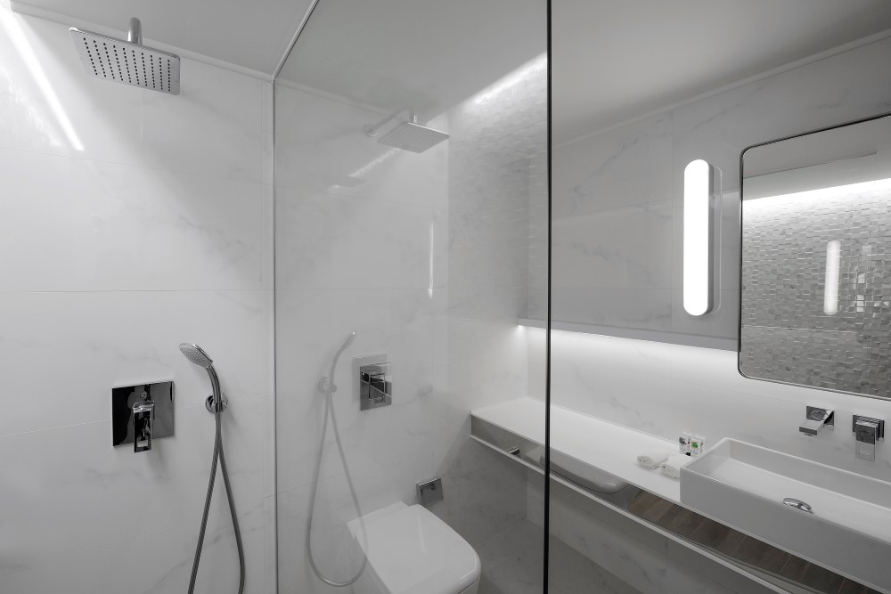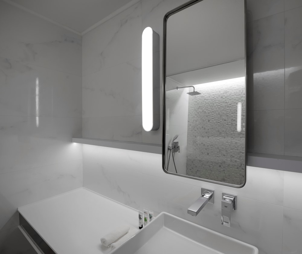 Ηeating and A/C are adjusted from a touch screen, while the room lights provide various light scenarios (computer based control) and a convenient master switch.