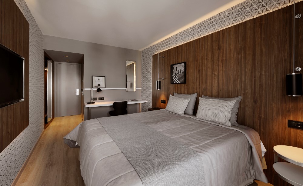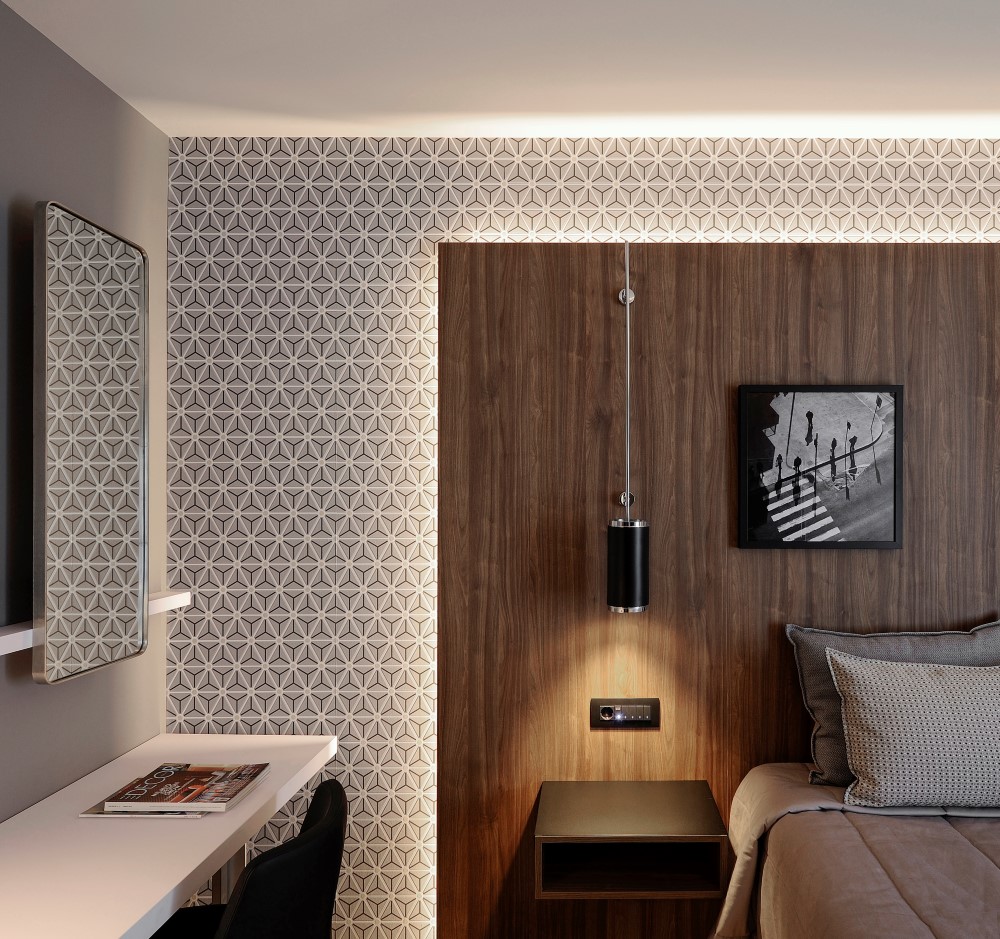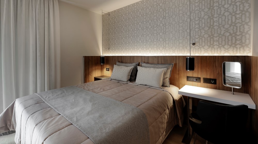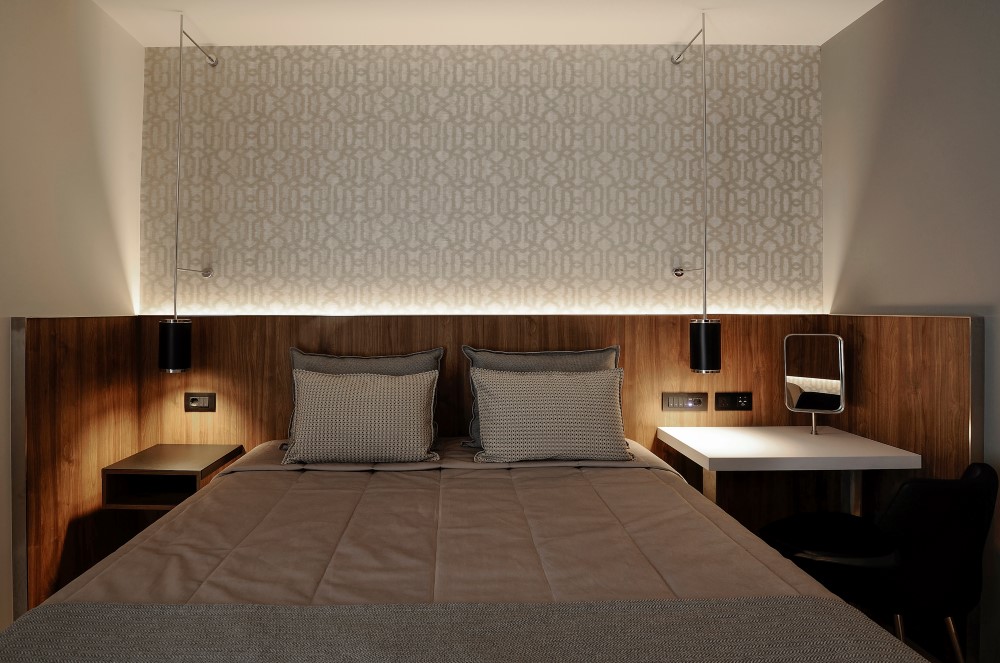 Special touches include GUBI desk light, a coffee/tea maker, a NESPRESSO machine, iron board, IONIC hair dryer and slippers. Design details like original lithographies from known artists decorate the bedroom giving our guests the best welcome.